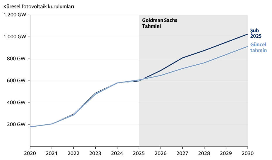 Kaynak: Bu yazı, 7 Ağustos 2025 tarihinde www.goldmansachs.com adresinde "The Outlook for Global Solar Energy Continues to Be Bright" başlığı altında yayımlanmıştır. Bu yazıda yapılan beyanların yatırım tavsiyesi niteliği taşımadığını lütfen dikkate alın.